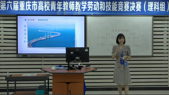 本次竞赛由重庆市总工会、中共重庆市委教育工作委员会和重庆市教育委员会主办。外国语学院刘先林、数学与统计学院伍习丽、土木工程学院贾真和马克思主义学院孙佳分别代表我校文科、理科、工科和思想政治课四个组别进行课程竞赛。