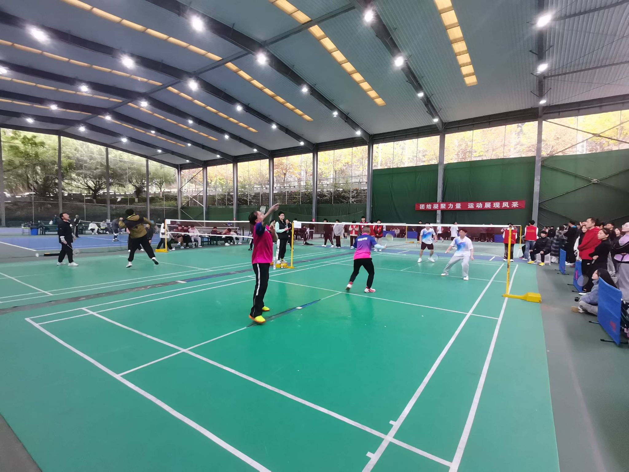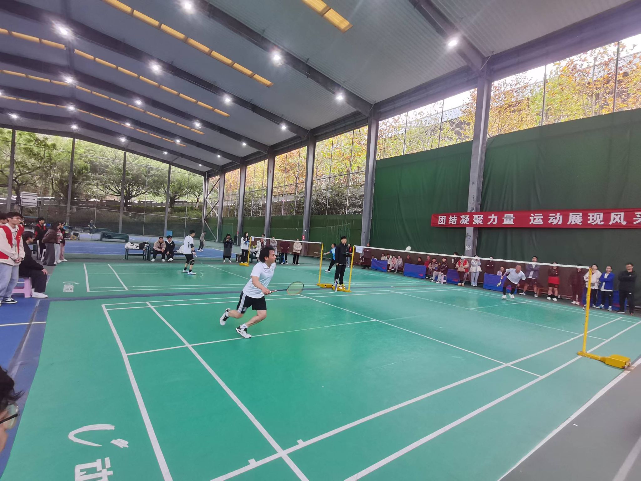 比赛当日,男单、女单、男双、女双、混双项目同步展开。赛场上,选手们身手矫健,球拍飞扬,每次扣杀与救球都引发现场观众欢呼与喝彩。单打拼技术与心态,彰显攻防实力;双打重配合和斗志,凸显团队协作精神。